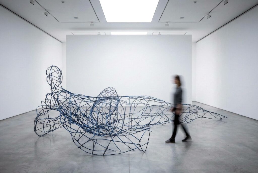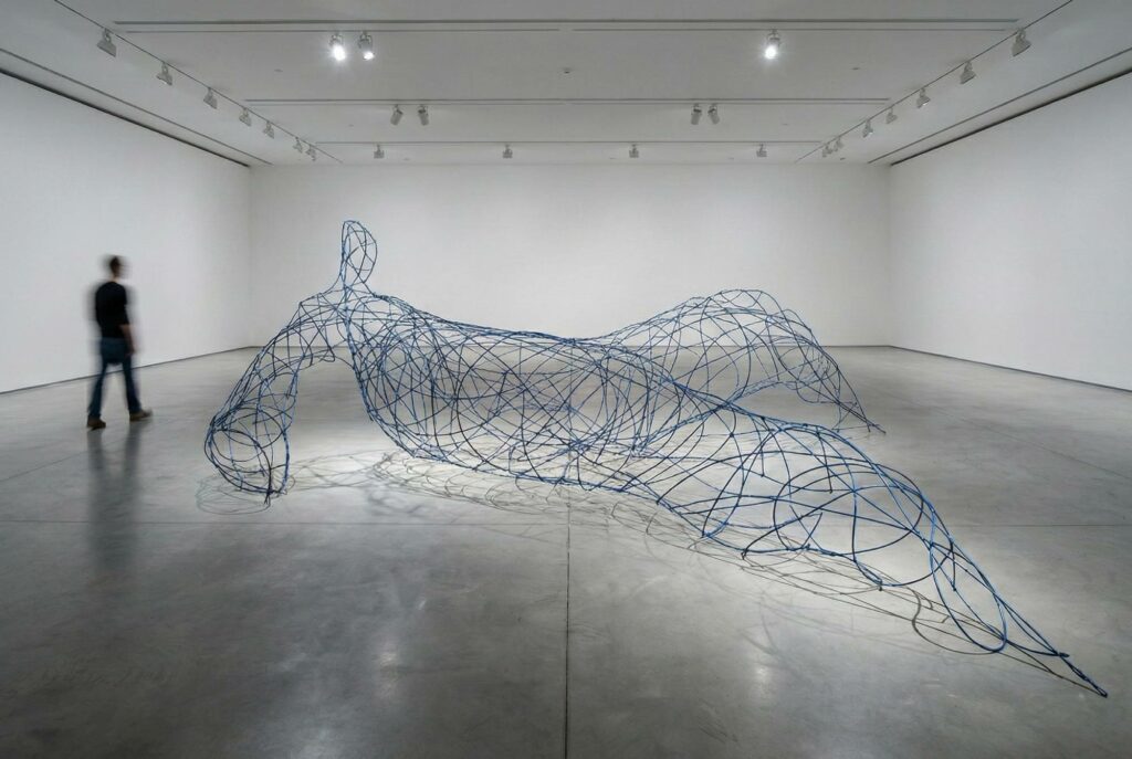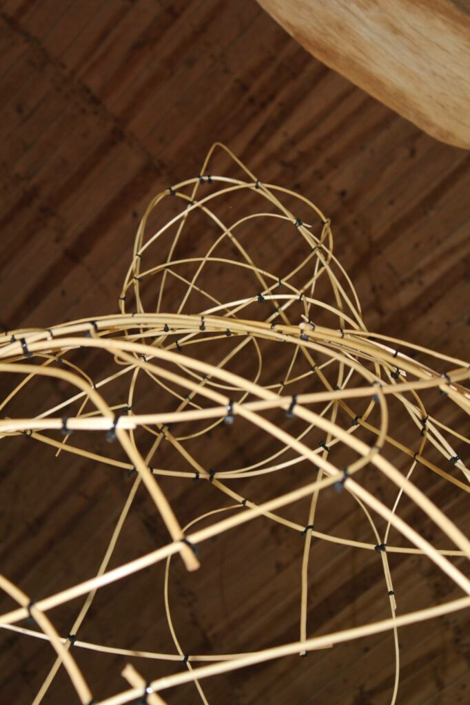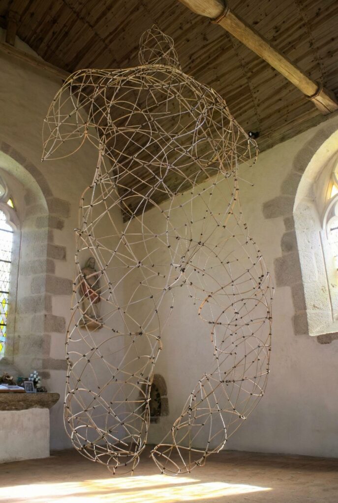 Femme allongée,150×430 x480cm. Osier autoclave, métal, peinture.