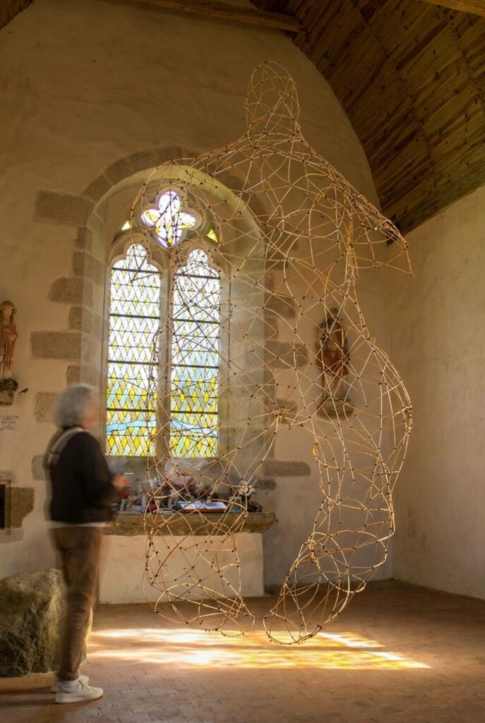 340cm x 170cm x 80cm. Travail in situ, Chapelle Saint-Céneri-le-Gérei.